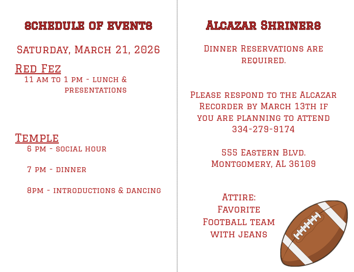 If you have or know of a child we can help, please have the family contact a Shriner or contact Alcazar Shriners 1-334-279-9174.